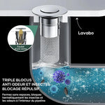 Contrairement aux canalisations à bouton-poussoir ordinaires, ce bouchon de canalisation est doté d'un panier anti-colmatage à l'intérieur qui recueille soigneusement les poils et empêche le canalisation de se boucher. Aucun bijou, bague, saleté ou autre objet ne pénétrera dans le tuyau d'évacuation.
